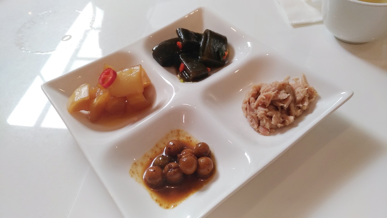 ▲首先送來的是配粥的漬物,看起來和罐頭的並沒有什麼不同,