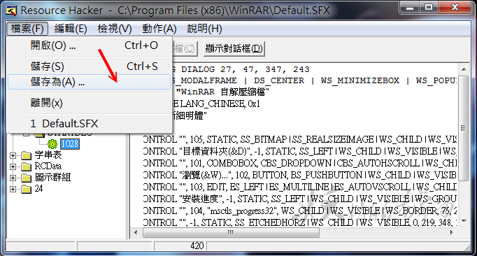 第1步 將上方的附件「ResHacker」解壓縮後執行,點選「檔案」→「開啟」。