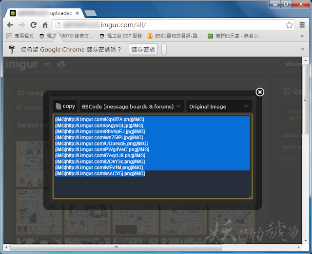 第5步 登登!出現的預設網址是Imgur的連結,若你要分享的話必須使用Direct Link,而論壇專用的圖片代碼是[img][/img],就要選擇BBCode。
