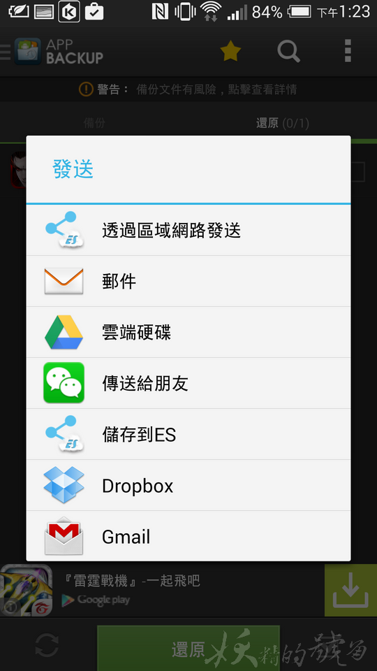 第6步 點選『發送』來將該apk檔案傳到自己的雲端帳號中。