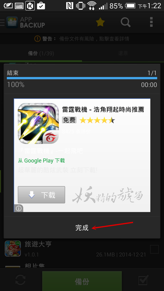 第1步 到Play商店安裝好『應用備份助手』後,點『開啟』。