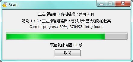 接著便會開始搜索所有的硬碟,我在工作的筆電上測試1T HHD+256G SSD