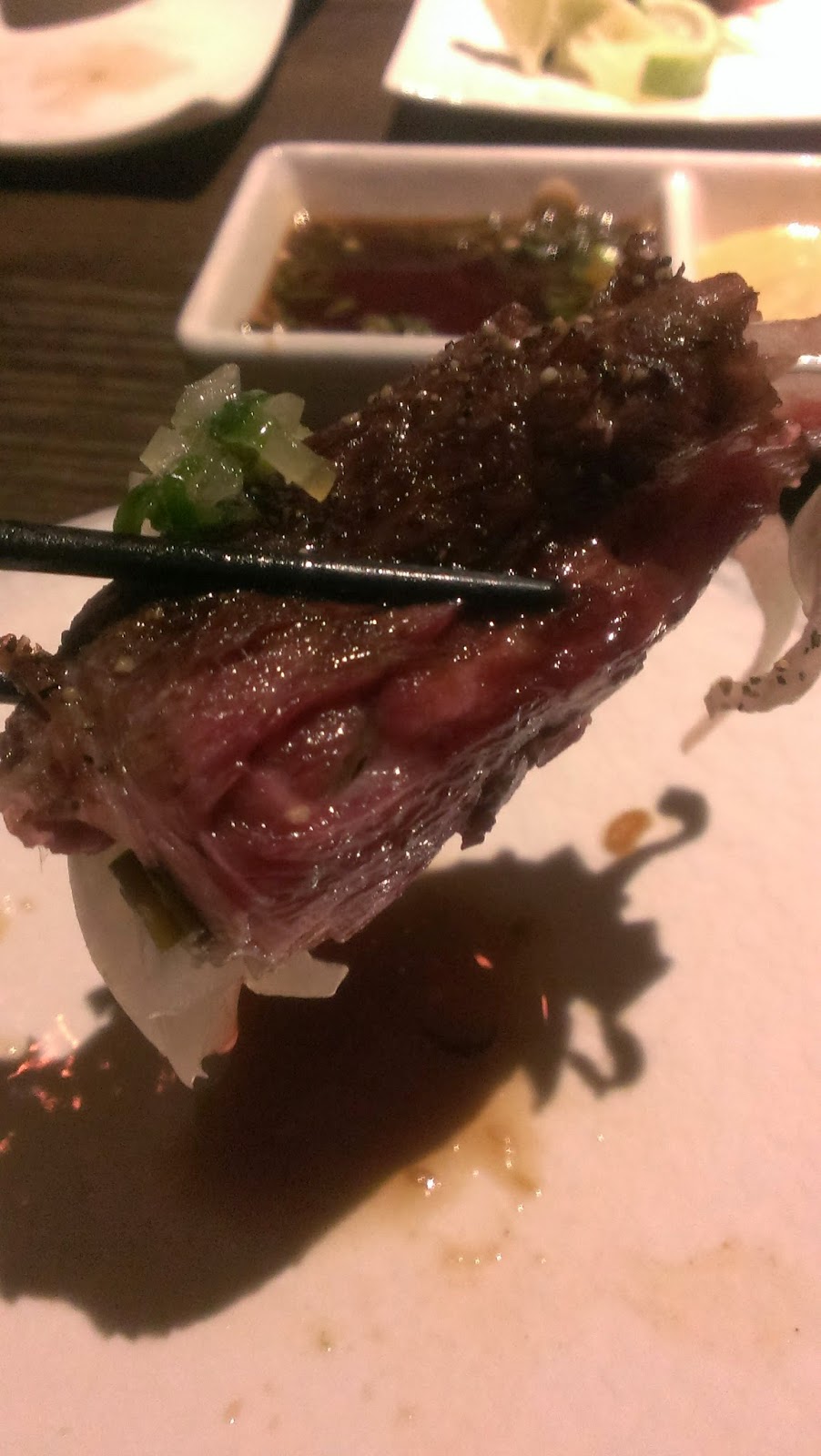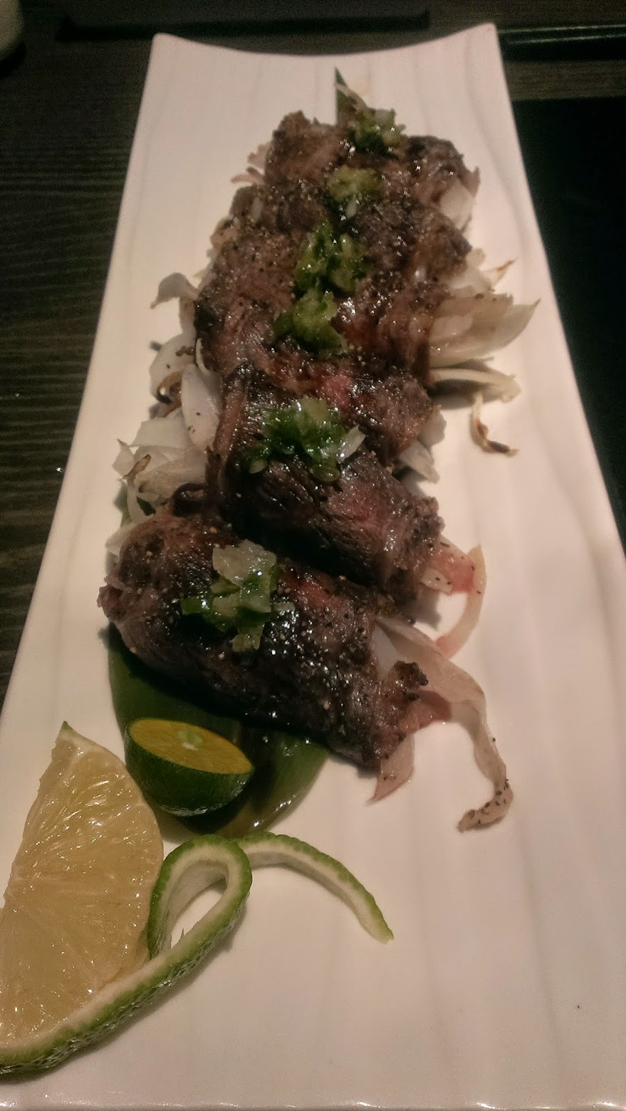 ●最令我印象深刻的是這道牛肉捲,是半熟的牛肉裹上生洋蔥,卻吃不到生洋蔥的辛辣,只留下甜味。中心放著一絲剝皮辣椒,上面在放上一小堆油蔥,把半熟的牛肉的甜味提高了許多非常好吃!