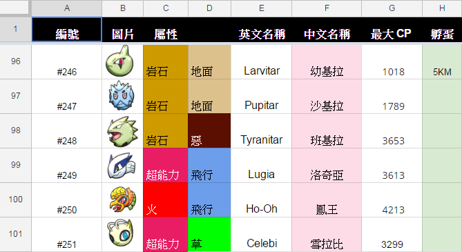 Pokemon Go 精靈寶可夢第二代終於出現!101隻新精靈,詳細圖鑑在這裡!(最大CP、屬性、中文名稱) 第二代寶可夢要出現的消息早在去年就眾說紛紜,讓許多人苦等了很久,終於在昨天開放了!面對新的101隻寶可夢,有很多資訊是第一代的圖鑑沒有提供的,網站《kikinote》就整理出了第二代的詳細圖鑑,讓玩家可以一手掌握新一代寶可夢的各種詳細屬性。這一次改版的迴響相當熱烈,看來第二代的出現能讓很多失去目標了的玩家回鍋一陣子。(圖片摘自:UDN) 圖鑑連結: 寶可夢第二代詳細圖鑑 → 點我觀看 寶可夢第一代詳細圖鑑 → 點我觀看 第二代的詳細圖鑑提供了兩種屬性、中英文名稱對照以及最大CP、孵蛋里程及糖果數,即使對第二代已經感到陌生了的玩家也能迅速了解。 2017 年 2 月 18 日 Pokemon GO 資訊新聞 0